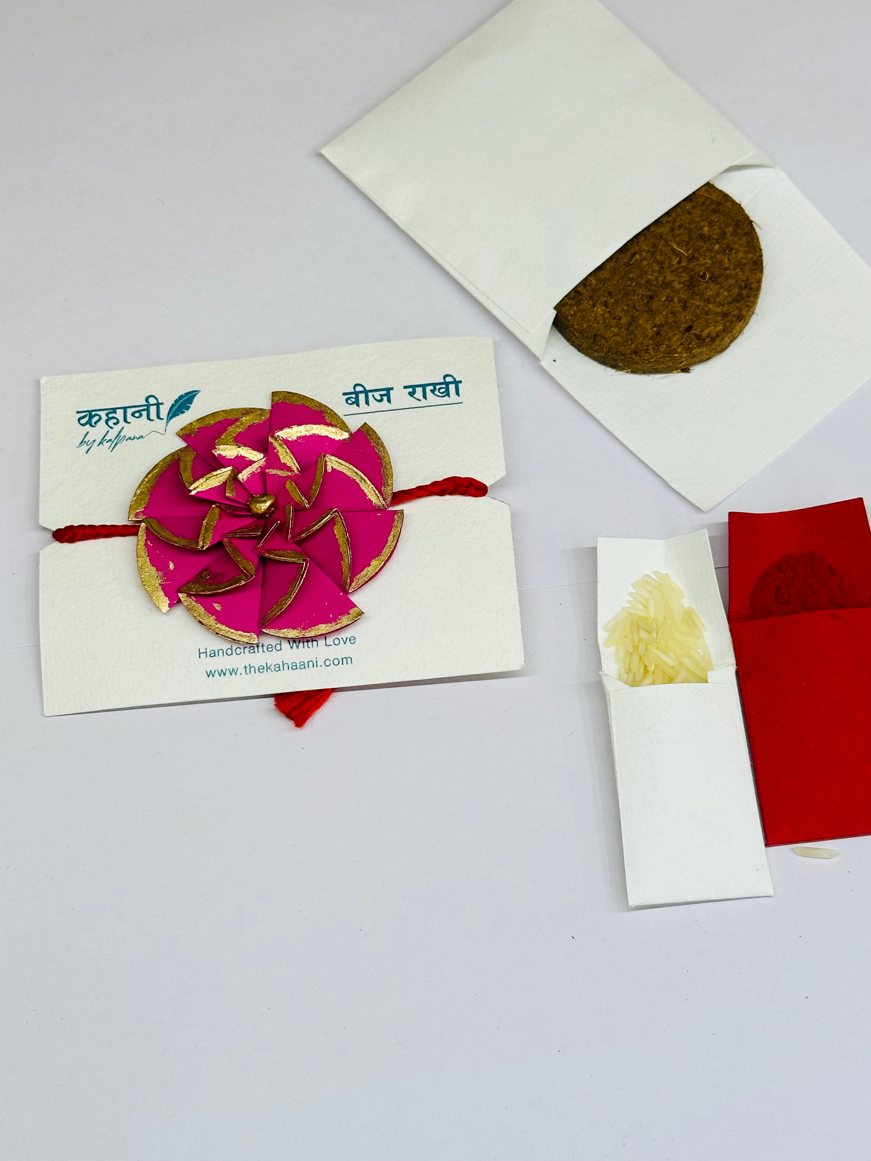 Each rakhi comes with a Roli Chawal pack for rituals and a Coco Disc to make planting easy and mess-free. A thoughtful, earth-friendly way to show your love and care.